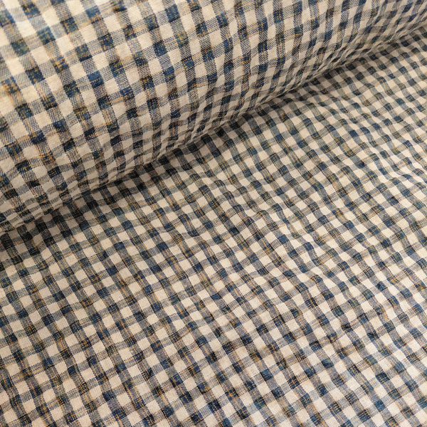 Cotton and linen mix gingham with a waffle cheesecloth texture