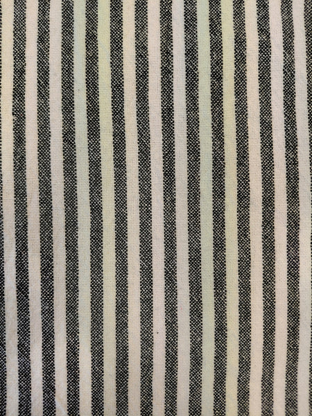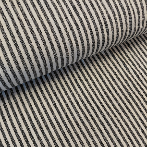 Organic cotton in a soft ticking stripe of natural with black.